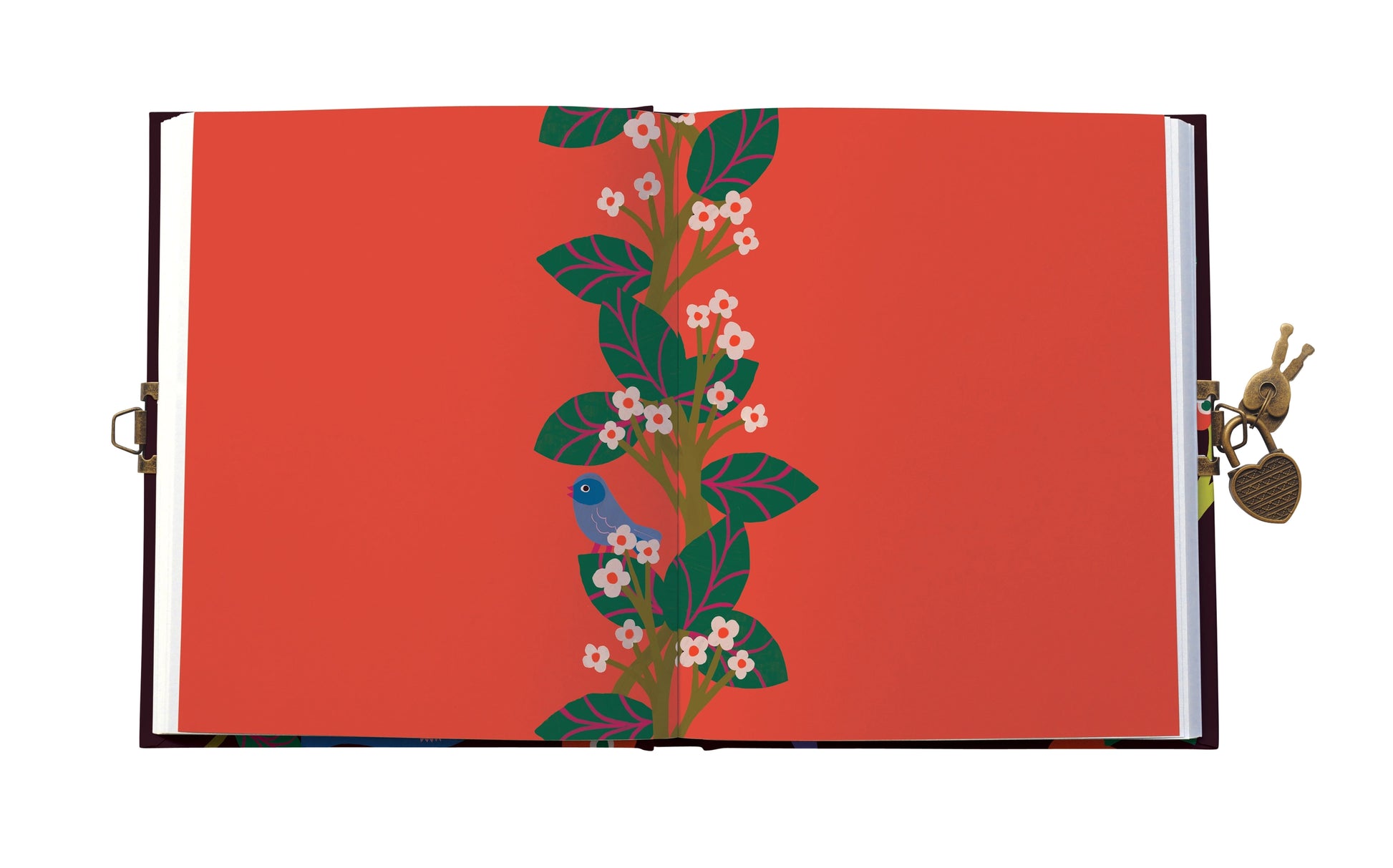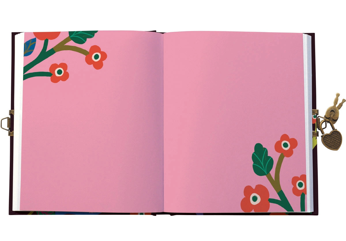 Impresionantes cuadernos para guardar todos tus secretos, ¡con candado y llaves en forma de corazón! Nuestros cuadernos con cerradura cuentan con interiores ilustrados a todo color, además de tapas duras con hermosas ilustraciones y guardas impresas. Cada centímetro de estos cuadernos está cubierto de color... ¡y deja mucho espacio para tus pensamientos! Son realmente especiales. Tarjetas y papelería a juego disponibles.
