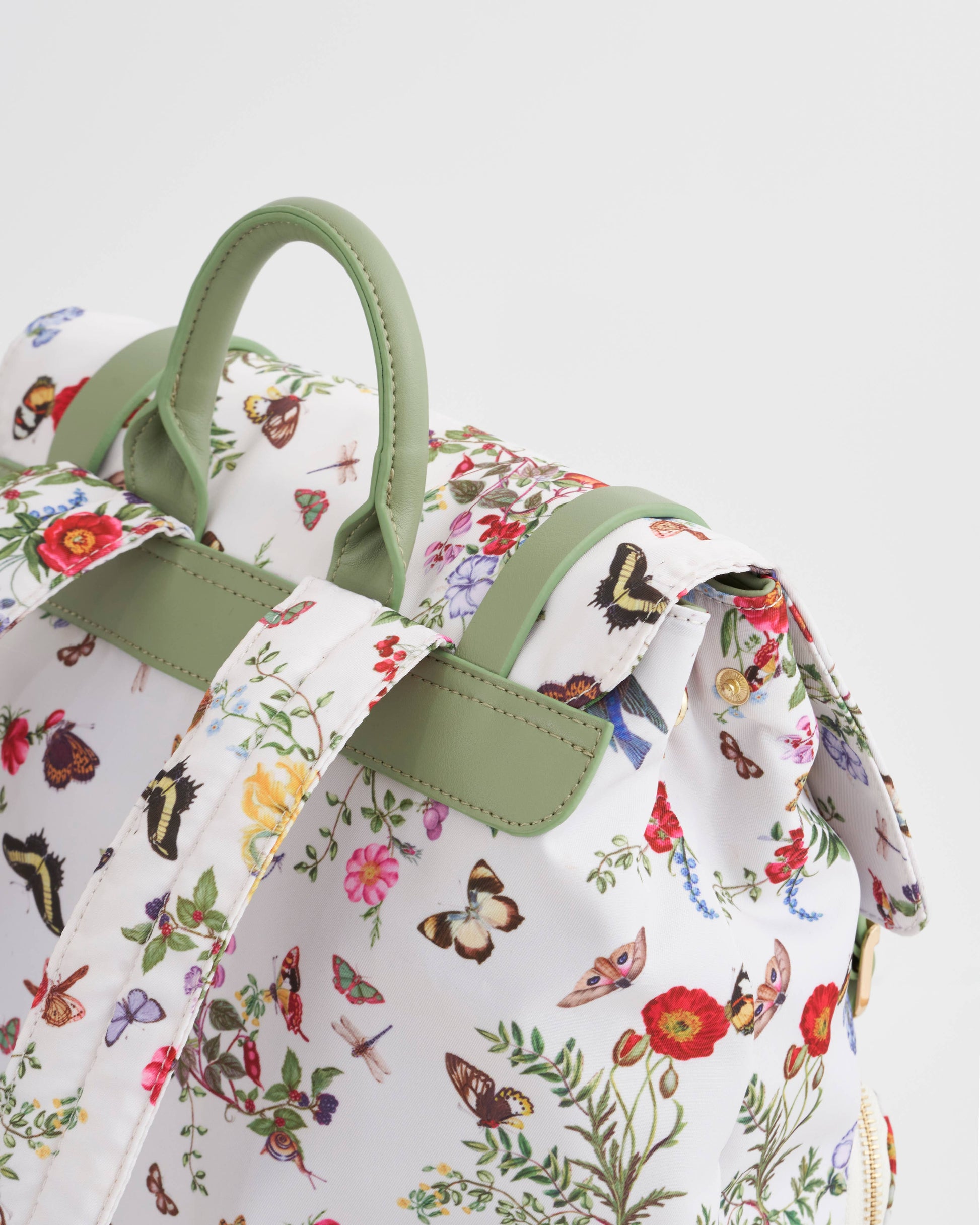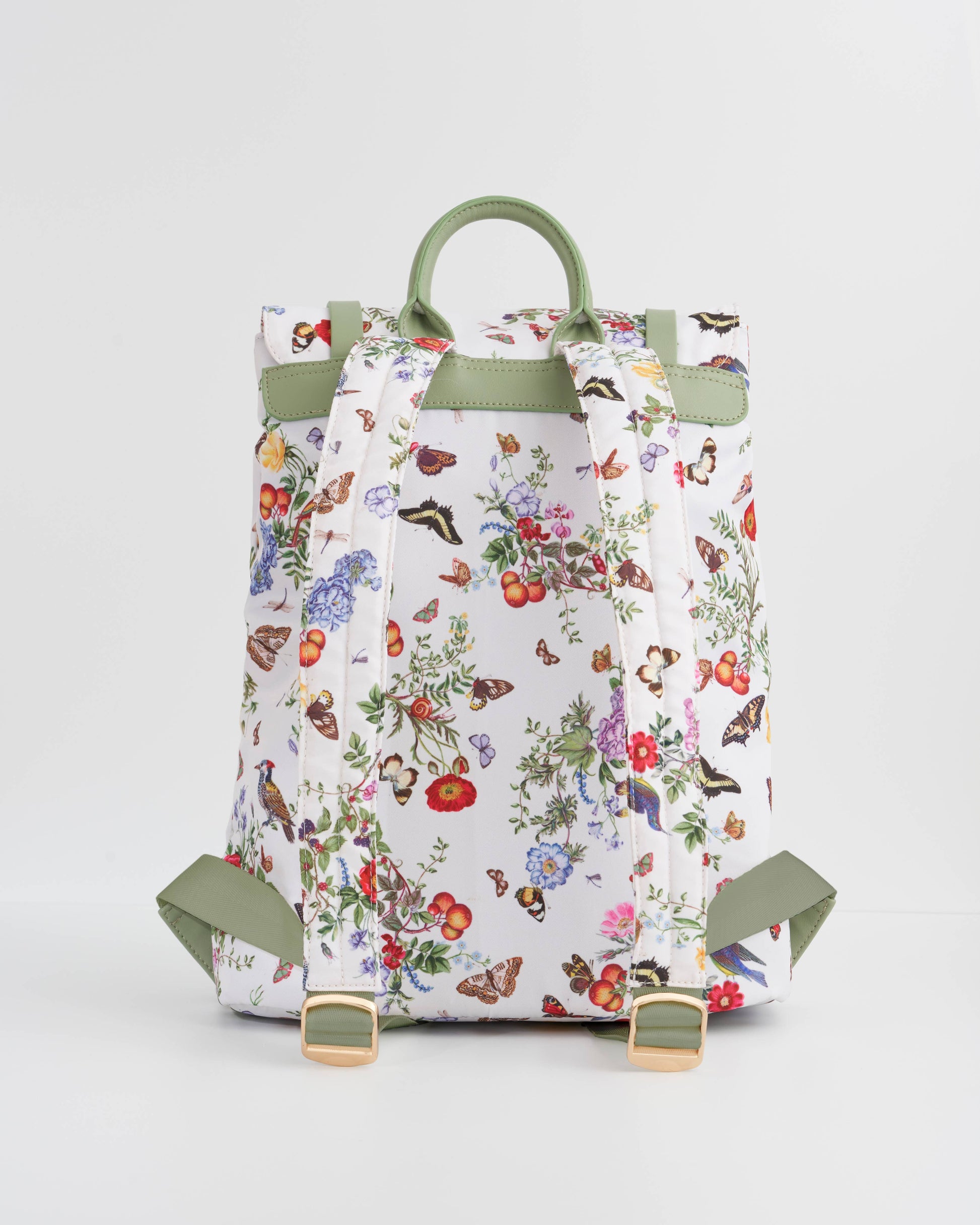 Sumérgete en un mundo de fantasía y encanto con esta cautivadora mochila que parece surgida del País de las Maravillas. Adornada con el estampado del Jardín de Alicia de nuestra heroína, es un vibrante tapiz repleto de intrincadas ilustraciones de pájaros coloridos, delicados insectos y un derroche de flores florecientes; cada detalle celebra la fascinante belleza de la naturaleza.