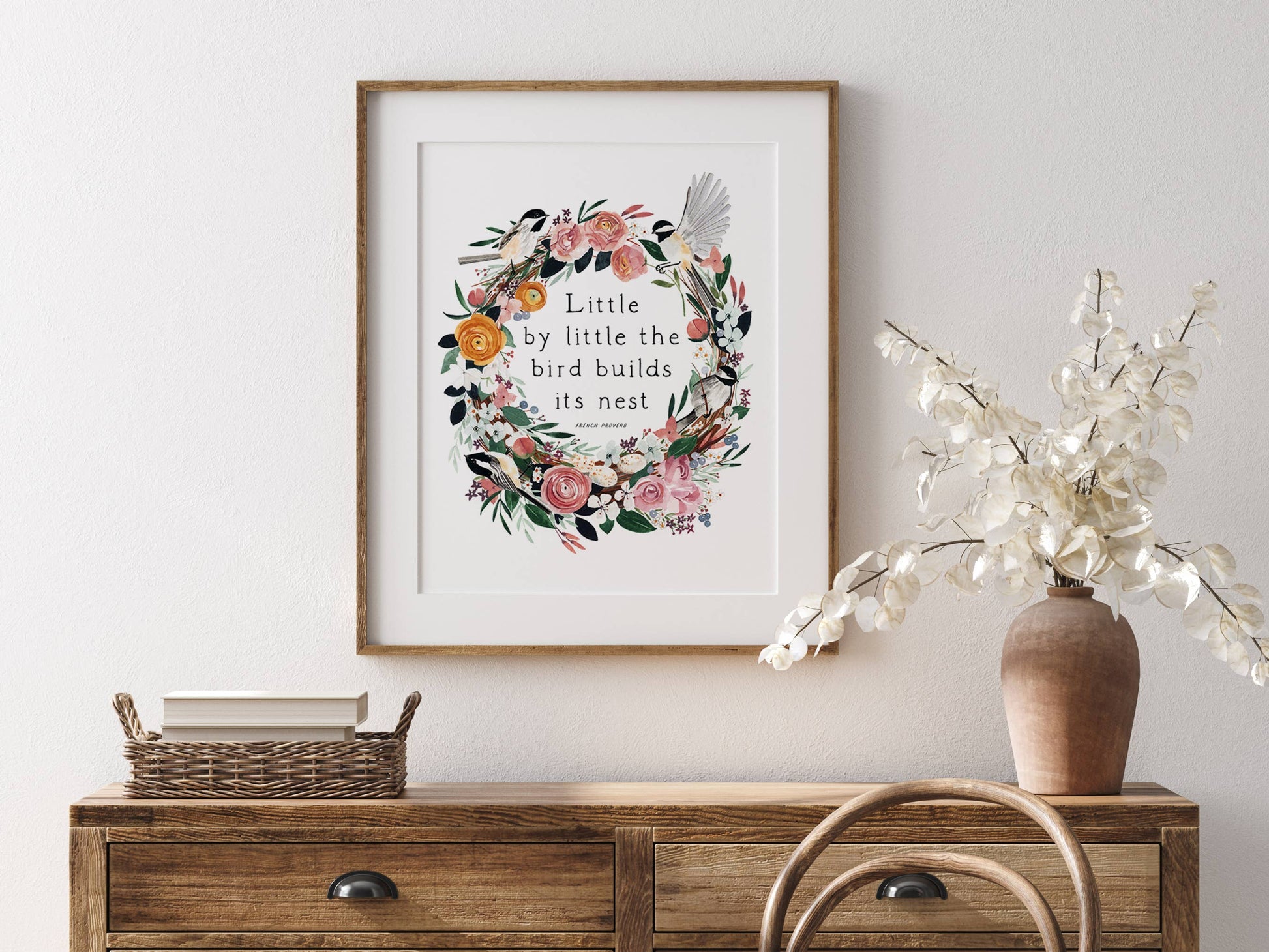 Leana writes: "I first came across this phrase while touring a historic home in North Carolina. It was so meaningful to the family that had lived there that they engraved it in the bricks of their chimney! It has come to be a meaningful phrase for me as well, a simple remember to slow down and trust the progress of tiny steps."