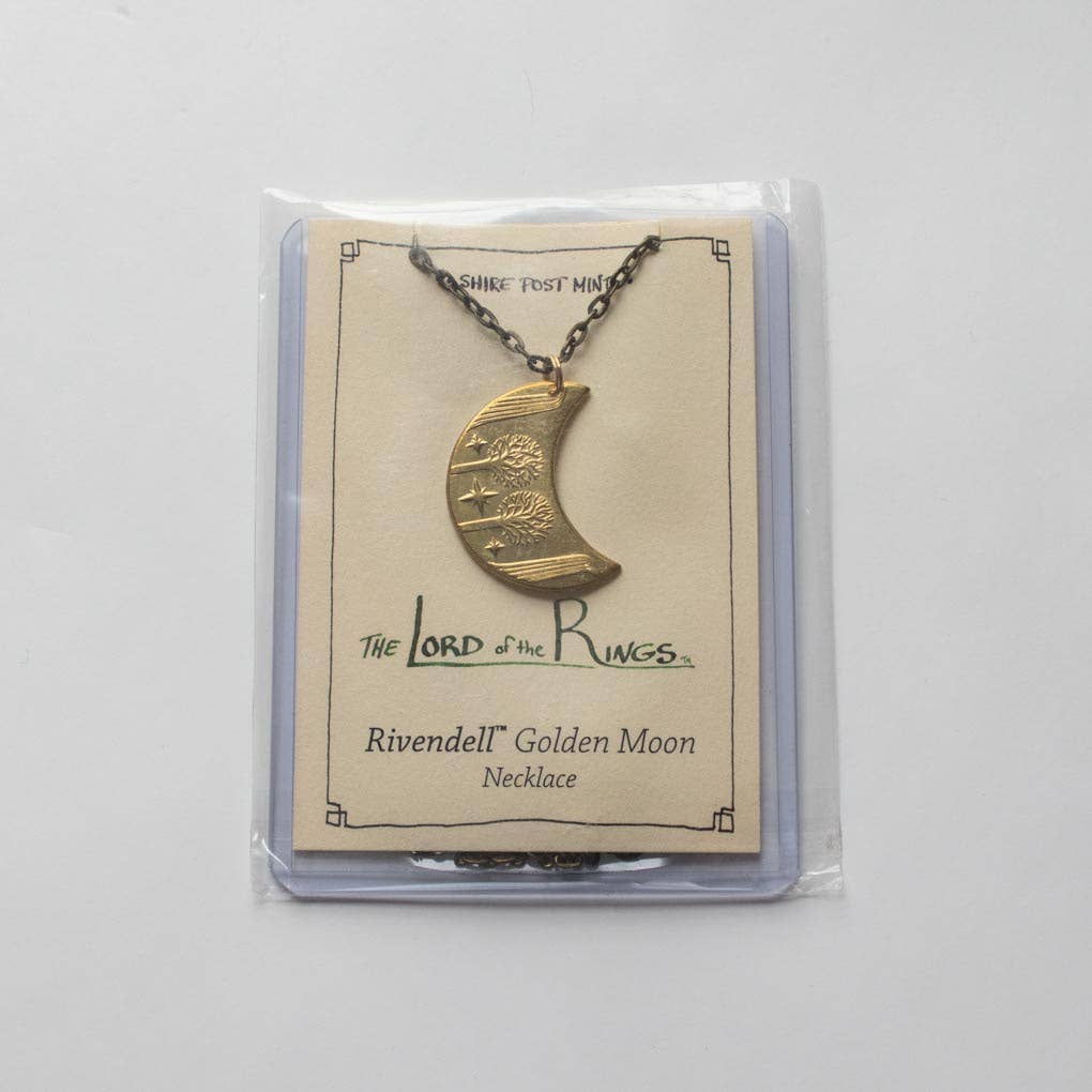Wear a piece of Rivendell around your neck 30" plated steel chain included. This unique crescent moon coin comes from Rivendell (Imladris in Sindarin), during the rule of Elrond™. It depicts the Rivendell valley, flanked by waterfalls, containing the ancient trees of silver and gold and the three Silmarils, represented as stars.